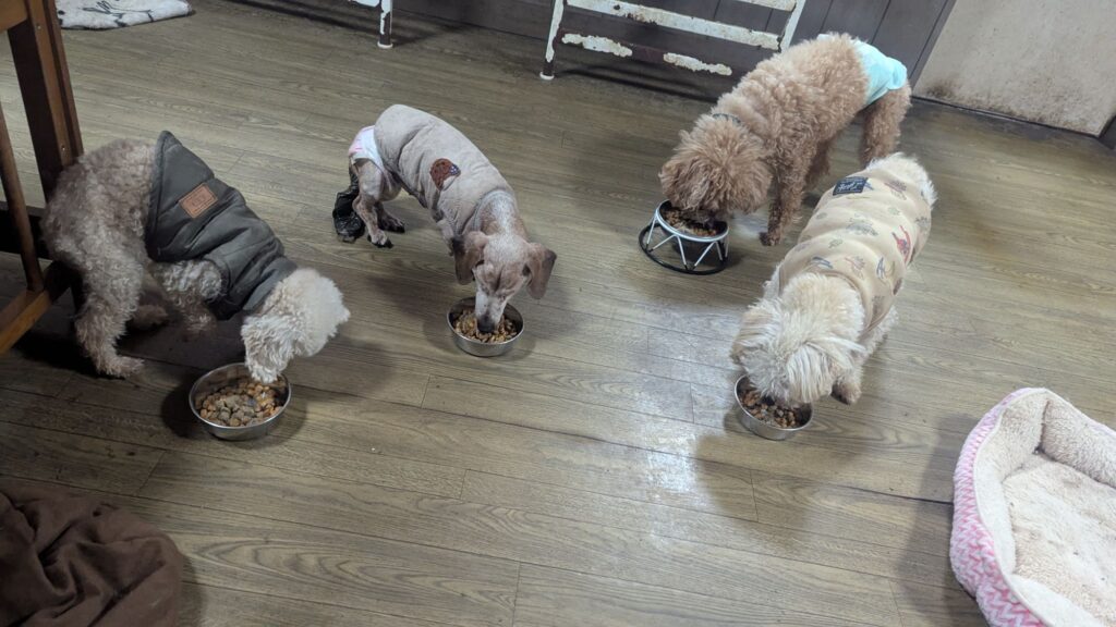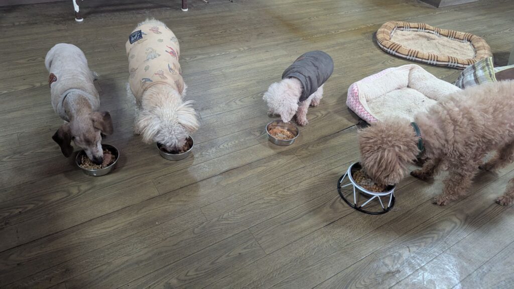 長期お預かりトイプーララくん、ゆずちゃん、ミックスチビちゃん、柴犬リキくん、さくらちゃん、プードルココちゃんしっかり完食しました。