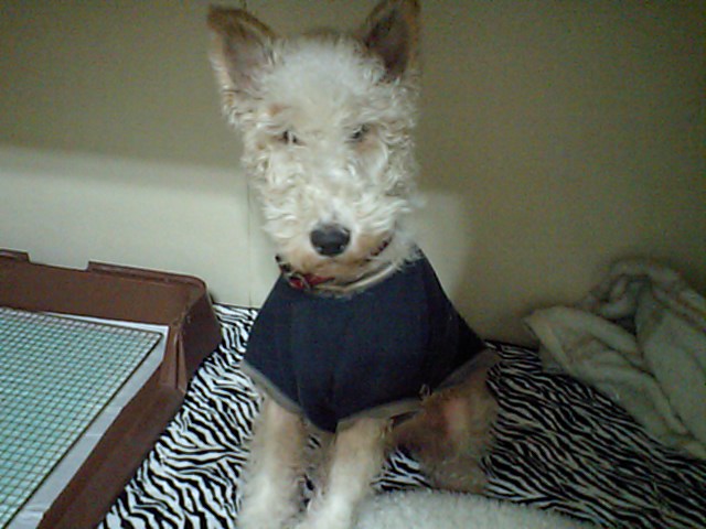 ワイヤーのロビン君、今日は天気が悪いので大型犬エリアで遊べなかったです。