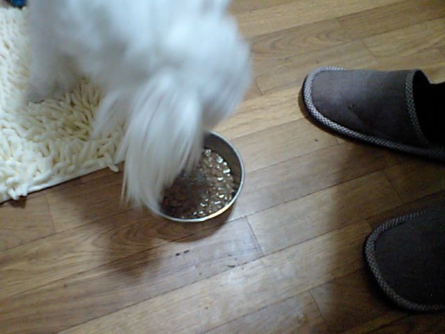 マルチーズのアラレちゃんは口を付けません。甘えるのが先みたいです。
