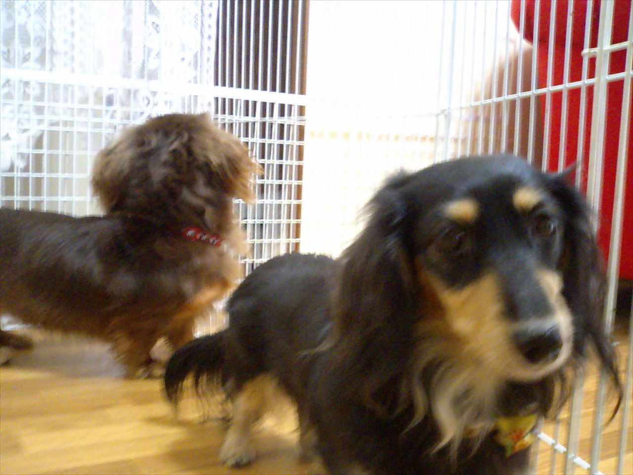 夕方からポメラニアンも合流しました。 ダックスとずっと遊んでいます。