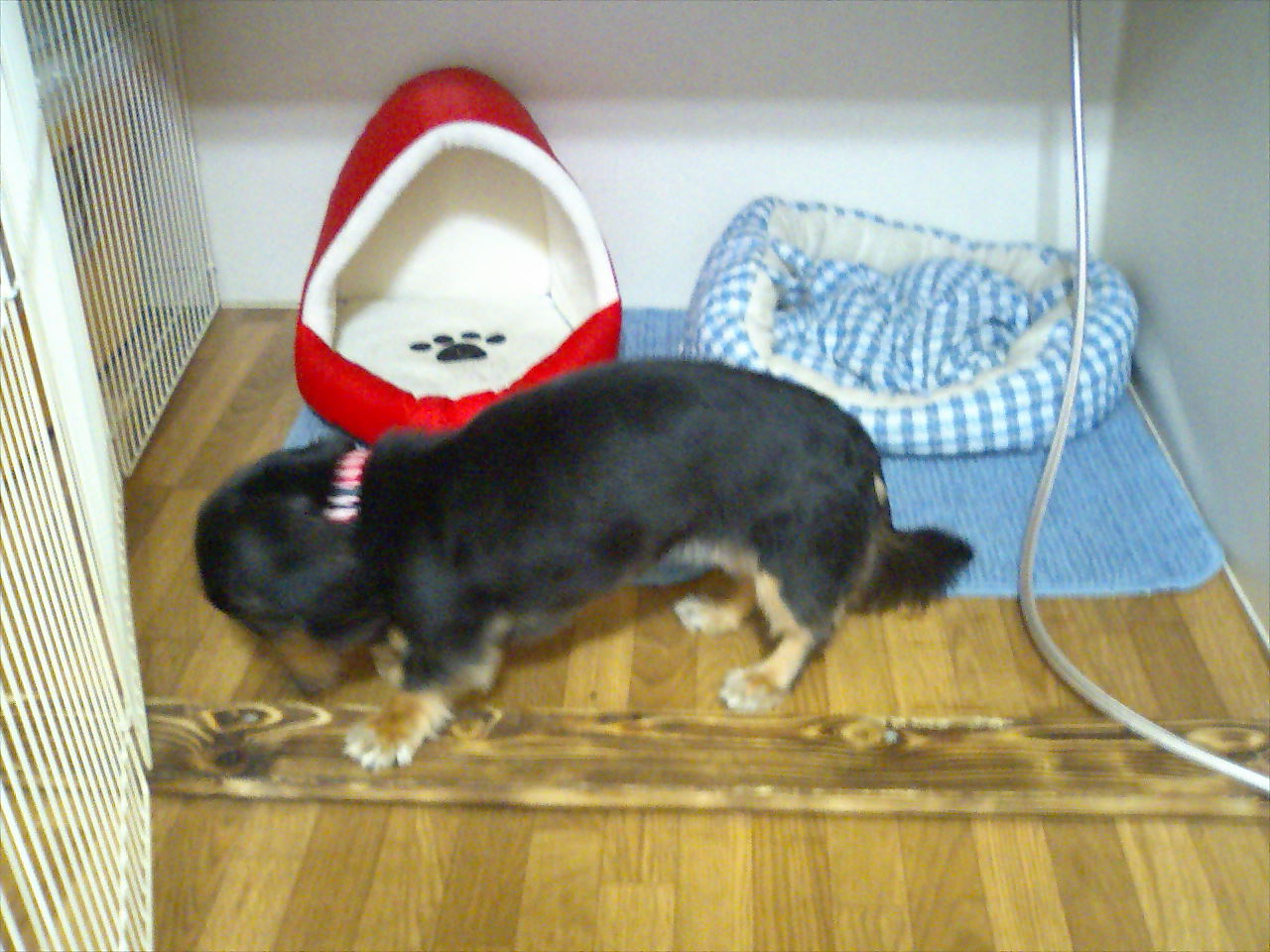 女の子はもう常連さん、のんびりとくつろいでます。男の子は預けるのも初めてとの事で、時折ヒュンヒュン鳴いてます。