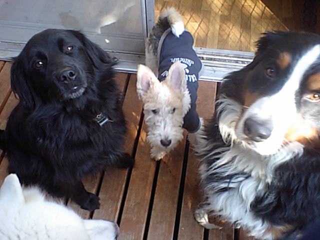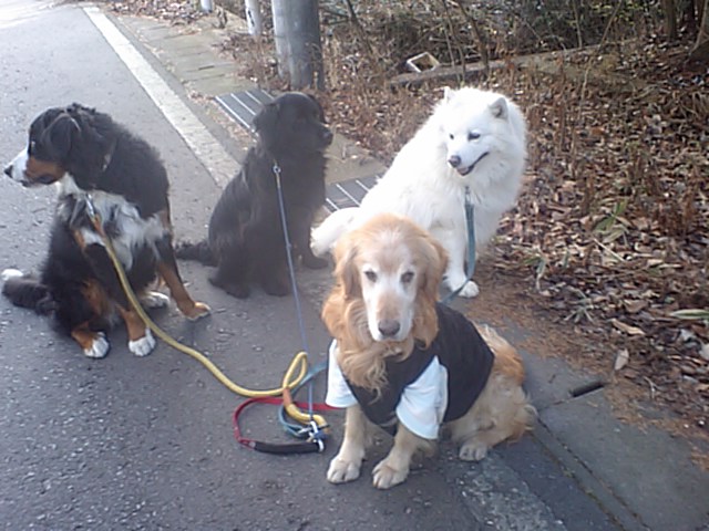 1380ecee.JPG昨日2頭の老犬組がチェックアウトして、常駐3頭だけの我がホテル。今朝は雨も上がったので長めに散歩いたしました。