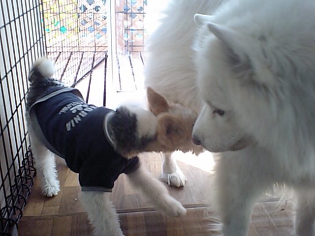 まだ狆ちゃんは若いから、今のウチに他の犬に馴れようね。
