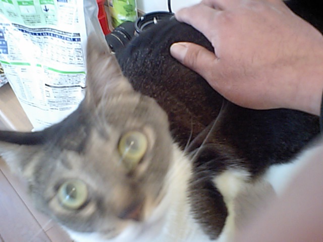一番疑わしいのは、いつもは逃げて回るM。 今日に限って甘えてきていた