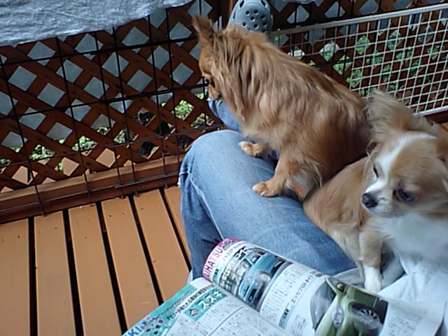チワワちゃんズは室内からデッキまで走り回ってます。