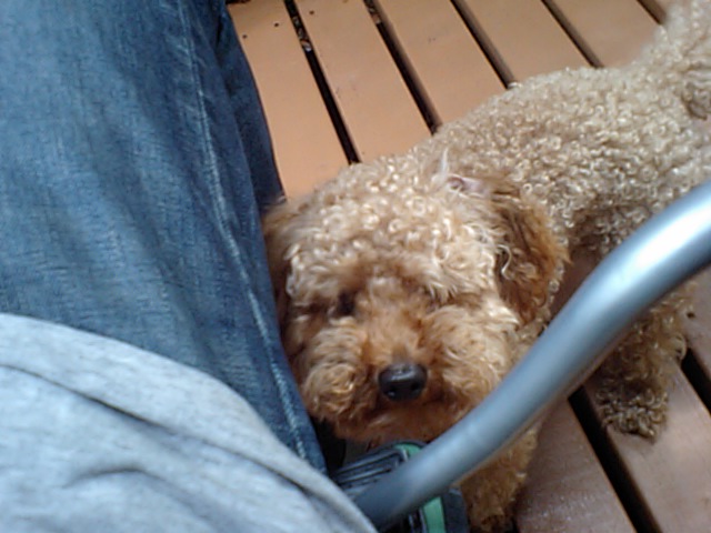 今朝の店長の膝の上は、トイプー君が勝ち取りました。