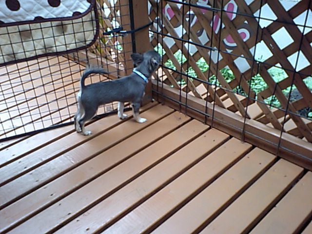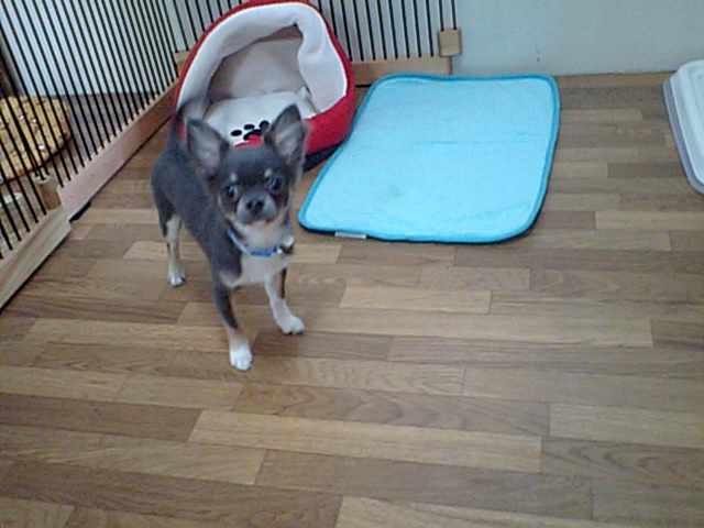 チワワ君は元気いっぱい。デッキと室内を走り回ってます (・ω・)/
