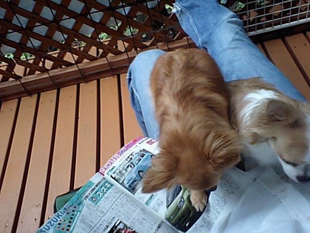 チワワパピー君が実力で膝の上を奪い取りました。 ∑( ̄口 ̄)