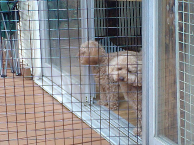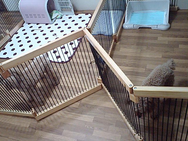 他の犬が苦手なので、サークルの中での預かりです。