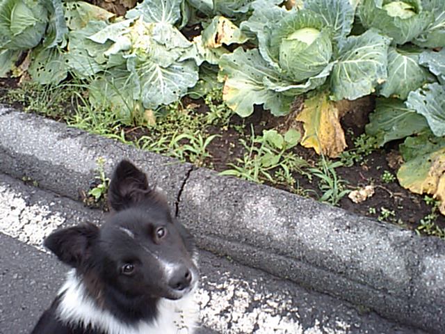 キャベツ畑の中をボーダー君は良い子で歩いてくれました。 店長の左脚側に付いて、ちゃんとアイコンタクトしながら歩いてました。 (‘-^*)/