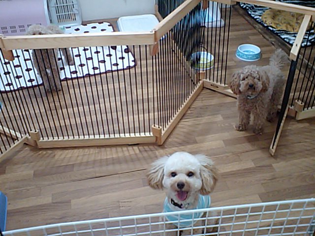 チェックインしてすぐに、昨日からのトイプーちゃんと遊んでます。