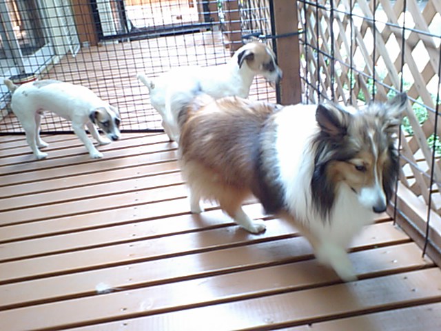 シェルティー君とラッセルずは仲良く遊んでます。
