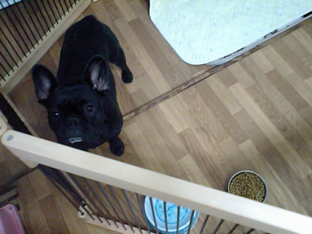 フレブルちゃんもたちまち完食。 サークルの中で良い子にしてます。