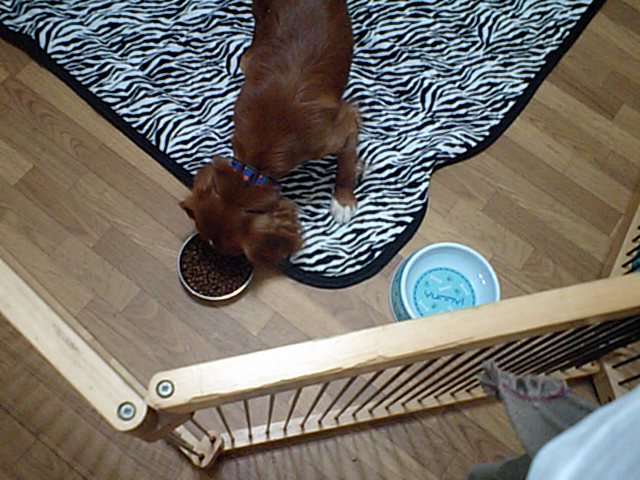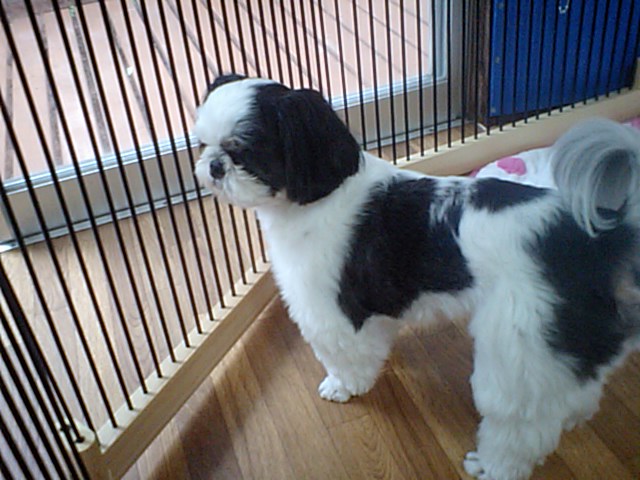 シーズーちゃんはご飯に口を付けませんね。サークルの中で良い子にしてます。
