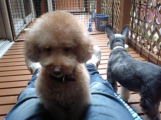 そしてまた興奮する繰り返しのトイプー君。サークルから出たら、シュナウザーちゃんが友達になりたがってます。