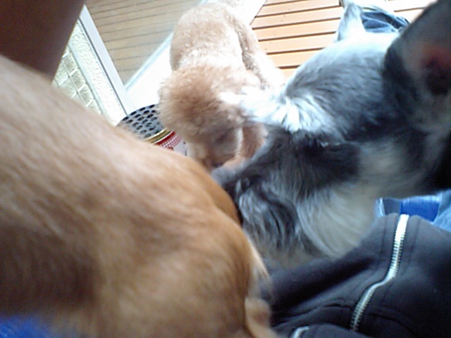 シュナウザーちゃんとトイプー君の挨拶攻めに会ってるからでした。 (^O^)/
