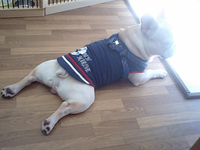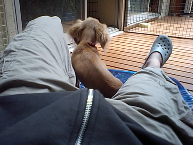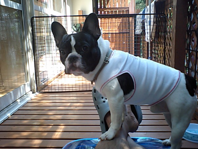 午後は交代でフレブルのパンタロウ君を外に出してます。ウンチも少し固くなったかな。血便も朝のうちだけでした。