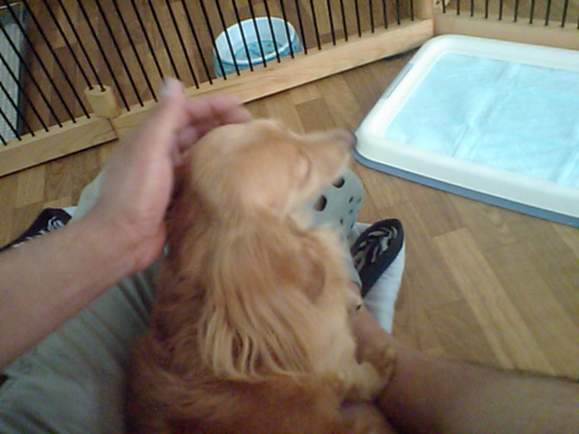 ダックス ルーク君はすっかり店長に懐いてくれました。他の二頭(他はチェックアウトしました)とも一緒に過ごしてます。遊びはしませんが…。
