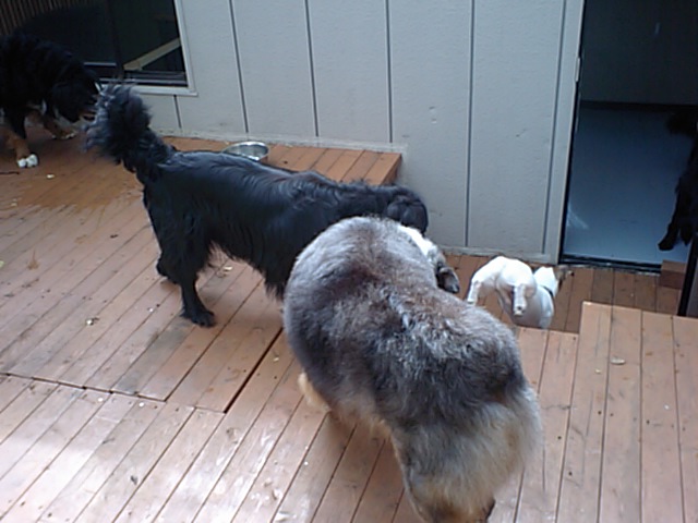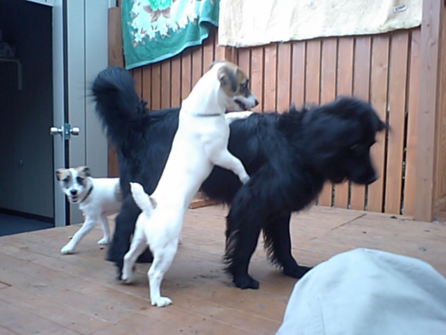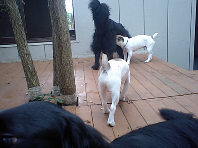 そしてジャックラッセルずもデッキで大型犬達と遊んでます。みんな常連さんだから、気心が知れてるから安心です。
