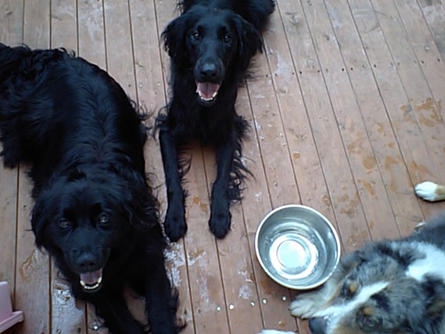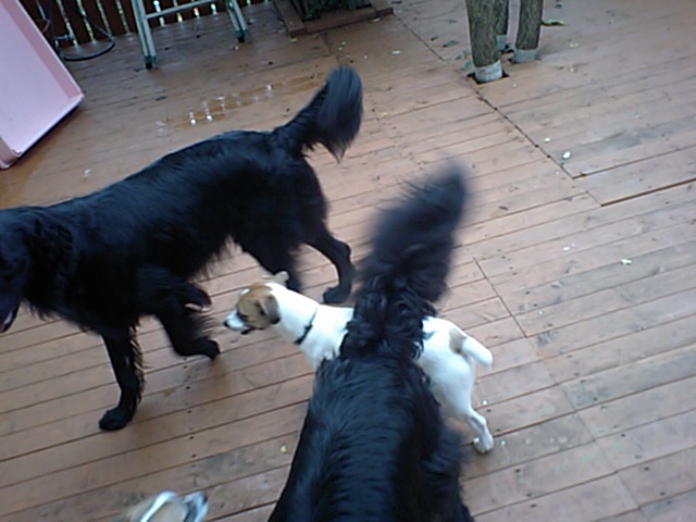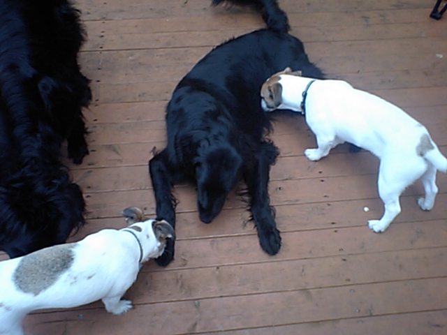 留守の間にインしたフラットとは初対面、でもすぐに仲良く遊んでます。