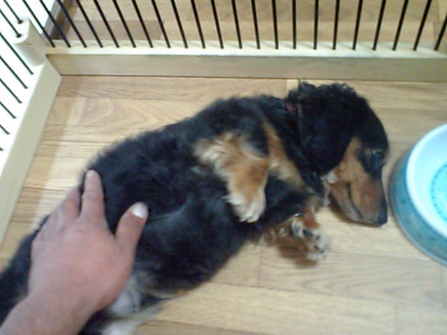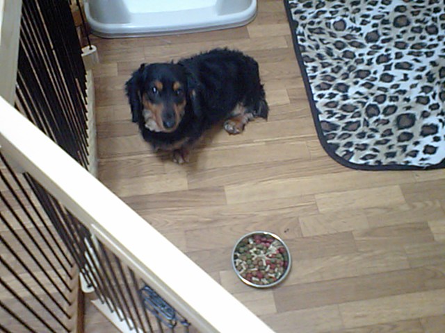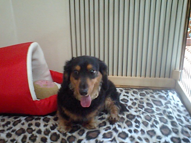隣に行くとダックス君が、「もう行っちゃうの?」ってこっちを見てます。