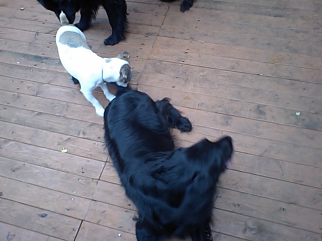 常連さんで顔見知りなんですが、流石にアクティブで名高いジャックラッセル、フラットを圧倒する元気さです。 ( ̄○ ̄;)