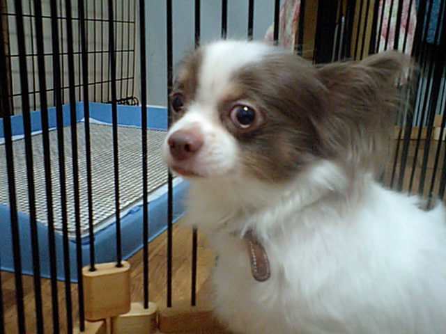 少し寂しそうなチワワちゃん。明日の朝に飼い主さんが連れ出しにくるからね (‘-^*)/