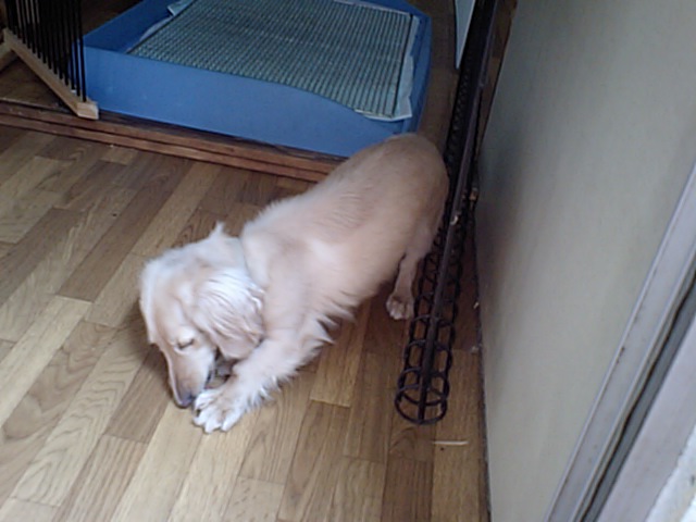 ゴールデン君とダックス君は早めにご飯を食べて、とりあえず寛いでます。もう少ししたらオシッコに出ようね。