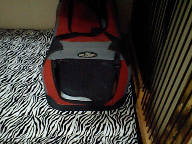 レッドのダックスパピー君は、ご飯に口を付けないでバッグの中。少し心配。