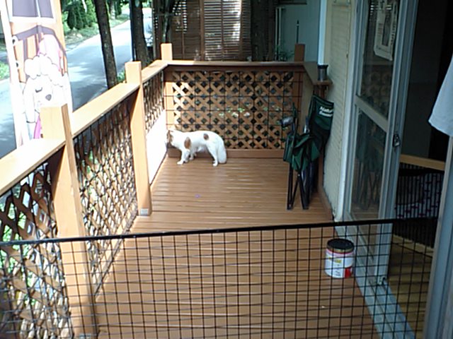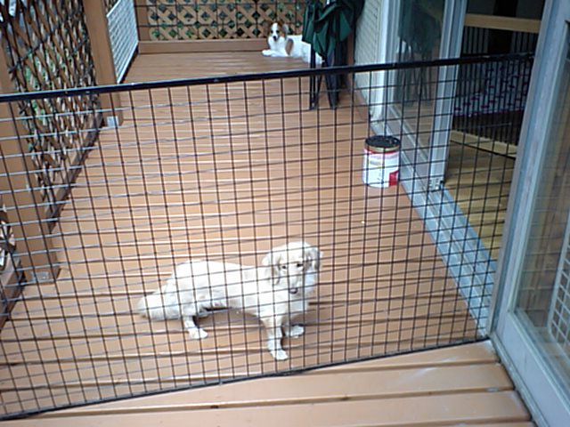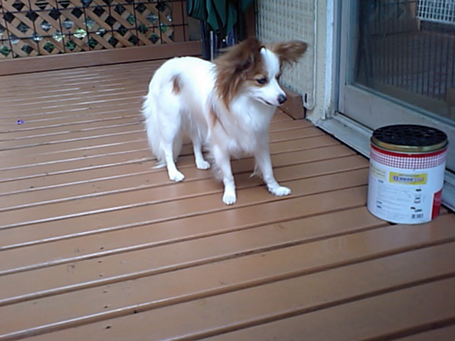 昨日からのお泊まりのダックスちゃんとパビヨンちゃん、デッキでウロウロしてます。