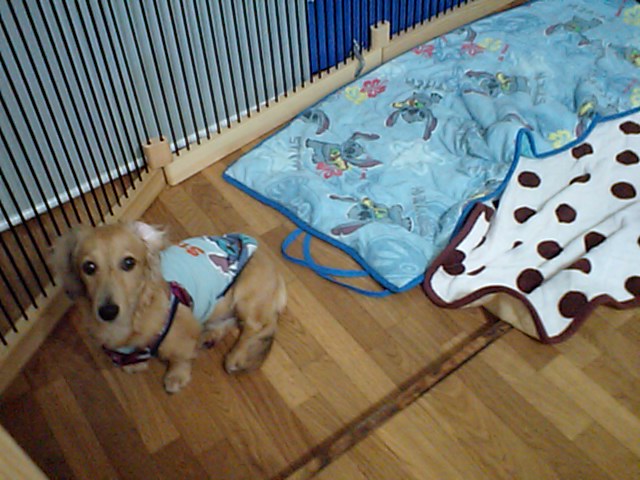 ただ、他のワンちゃんと接触がダメなので、サークルの中のお預かり…。