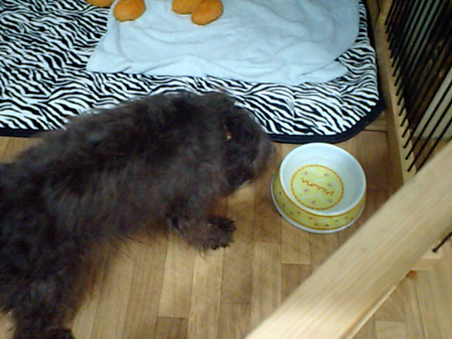Mシュナちゃんは凄い勢いでご飯を完食。 パピパピちゃんは、トッピングしたおやつだけを寝床に移動して食べてます。