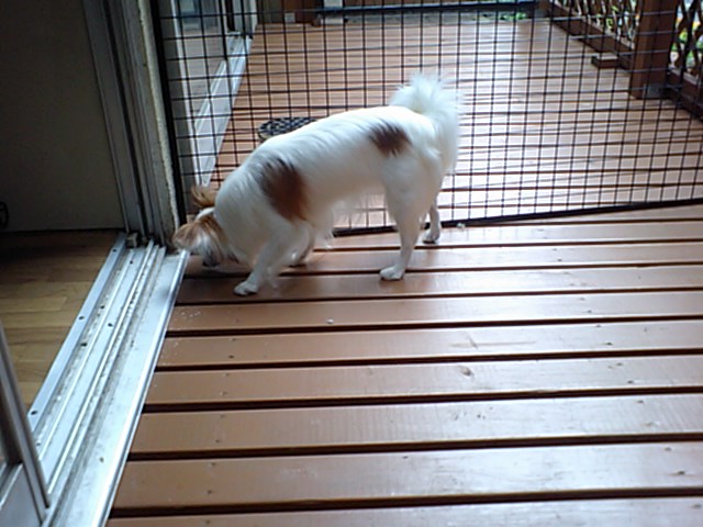 でも、しばらくしたら降りて、今度は店内からデッキをウロウロしてます。
