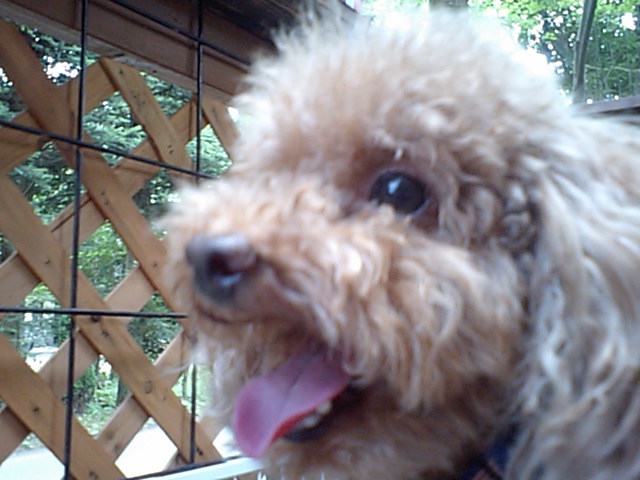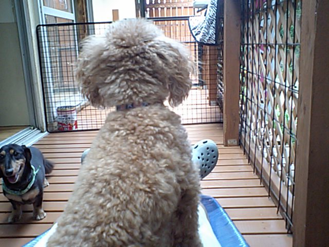 トイプードルのパピーちゃんはデッキに出てきません。 出たそうなんですが、デッキが怖いのかなんなのか…。