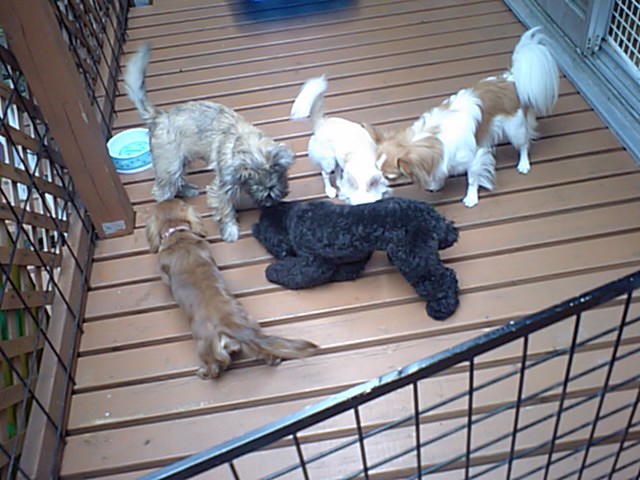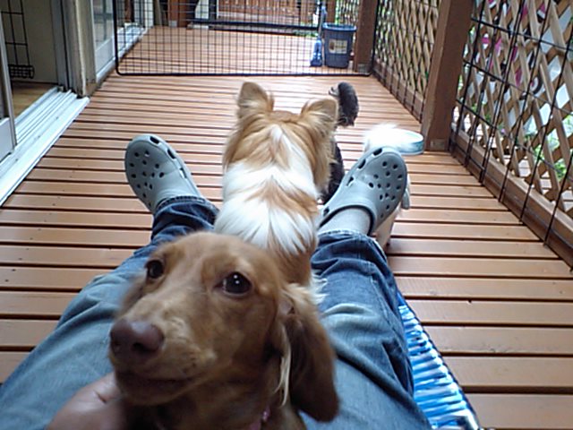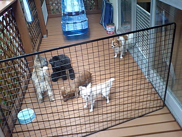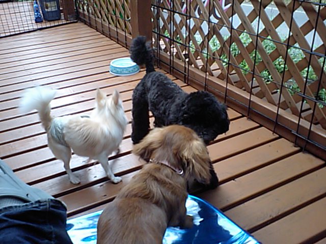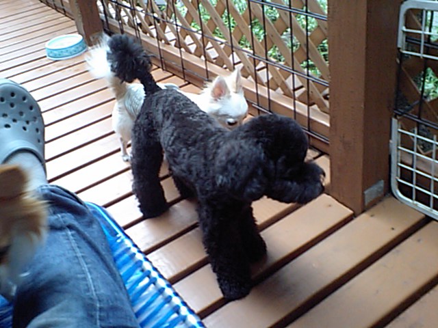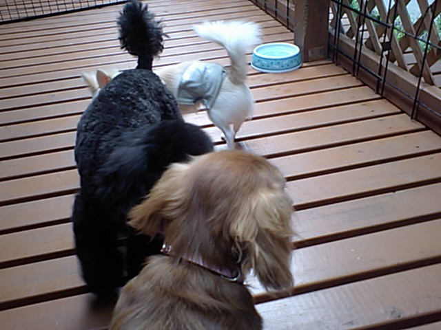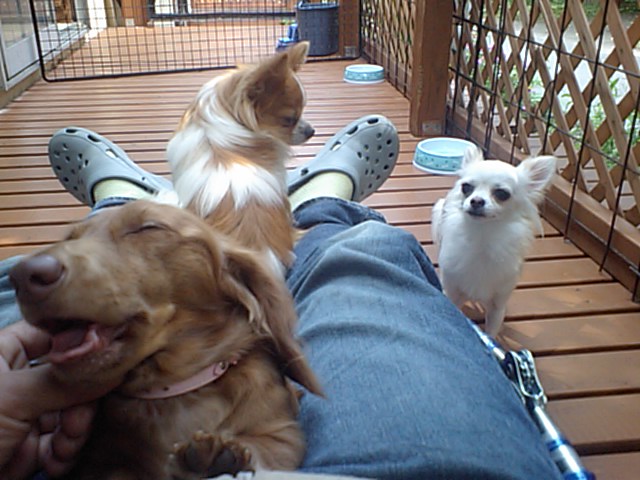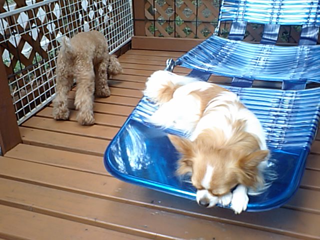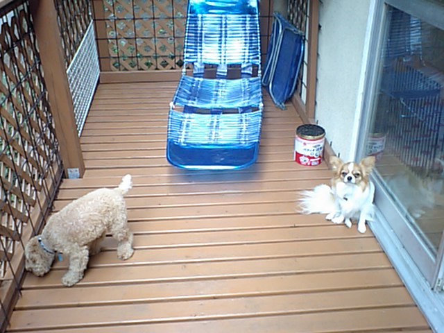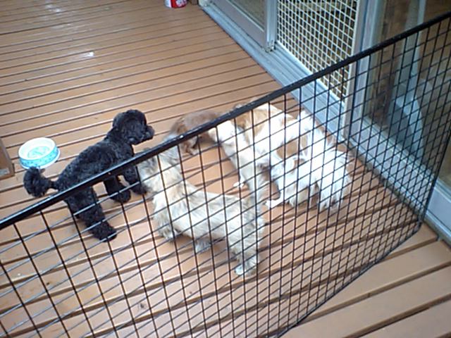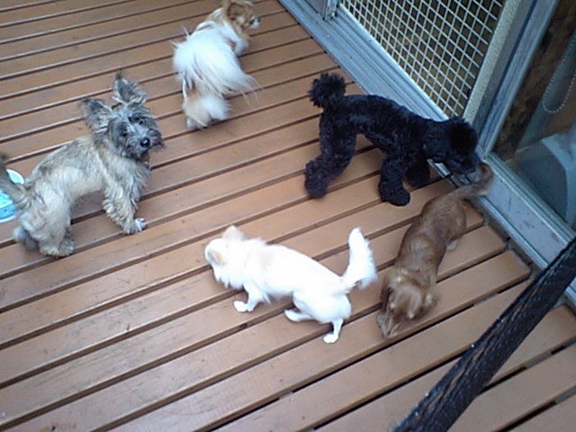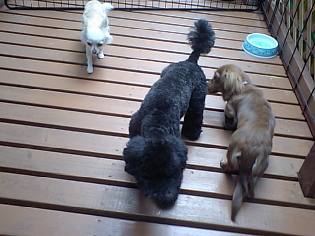 チワワ君はトイプーちゃんがお気に入り、盛んに追いかけてます。自分はチワヨン君に好かれて追いかけられ、その隙を見てトイプーちゃんを追いかけ…。忙しい忙しい。
