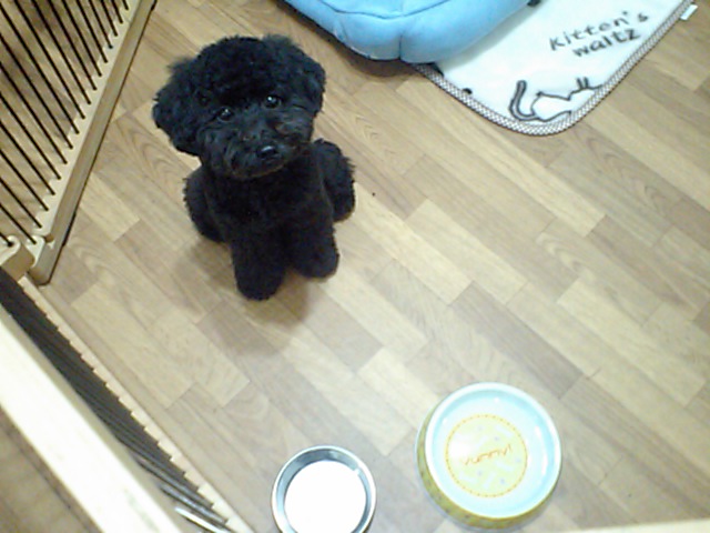 みんながご飯を食べてるのに、一人だけご飯がないトイプーちゃん。