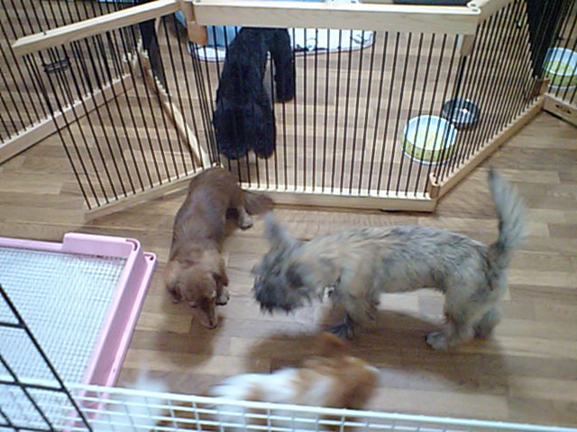 ケアン君がトイプーちゃんを気に入ったらしく、盛んに遊びに誘う。