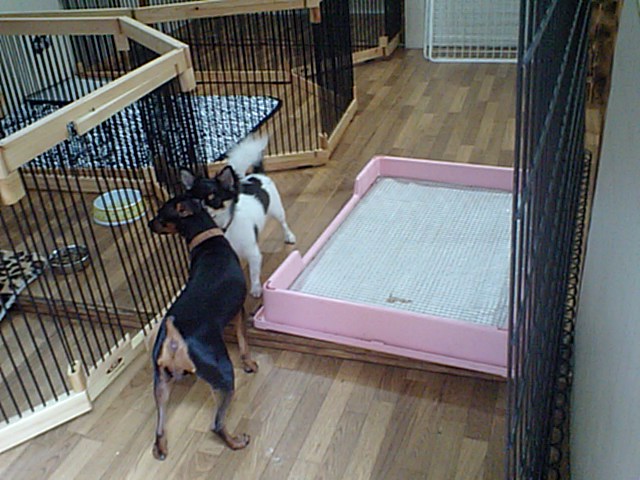チワワ シーズーちゃんズがチェックアウトして、ミニピンちゃんとチワワパピー君だけになりました。