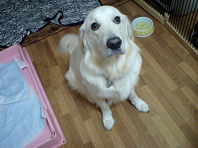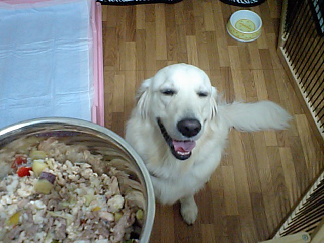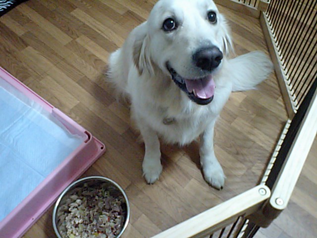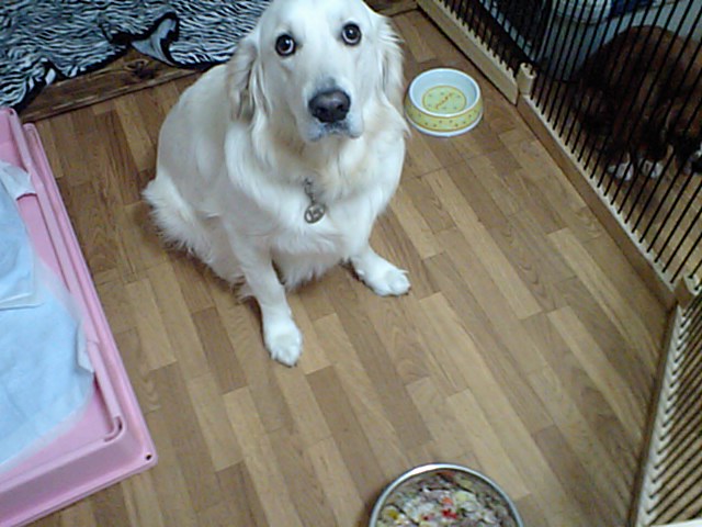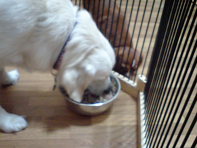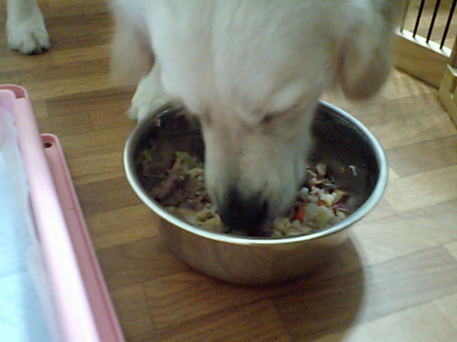 一人だけ遅い時間に夕ご飯のき~、ちゃんと『待て』してお利口さん。 そしてお待ちかねのご飯を凄い勢いで食べてます。