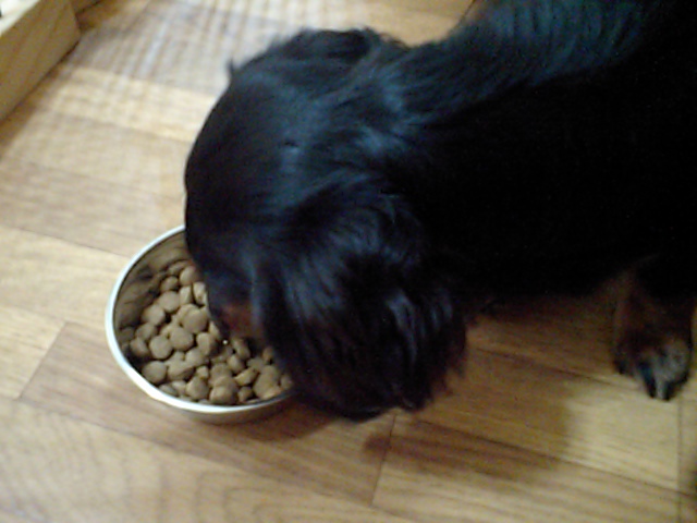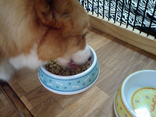 コーギー君はお待ちかねしてすぐに完食。もの足りなさそうですが…