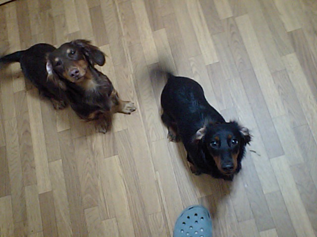 夕べはワイヤー君と常連ダックス君がチェックアウトして、お泊まりはダックスずのチョコちゃんとモカちゃんだけでした。
