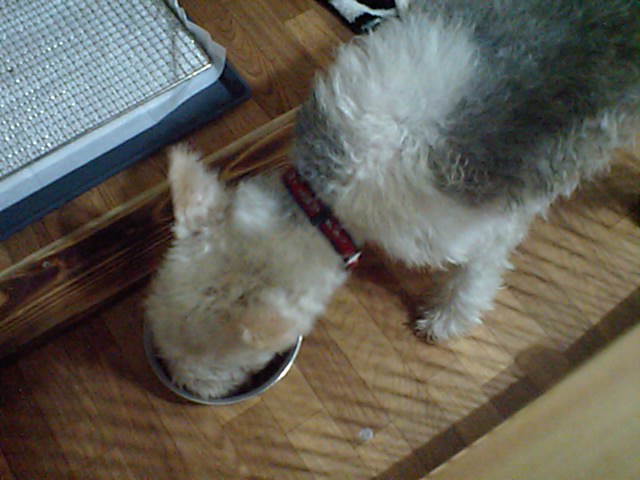 二匹で店内をバタバタ走り回って、合間合間にご飯を食べてます。