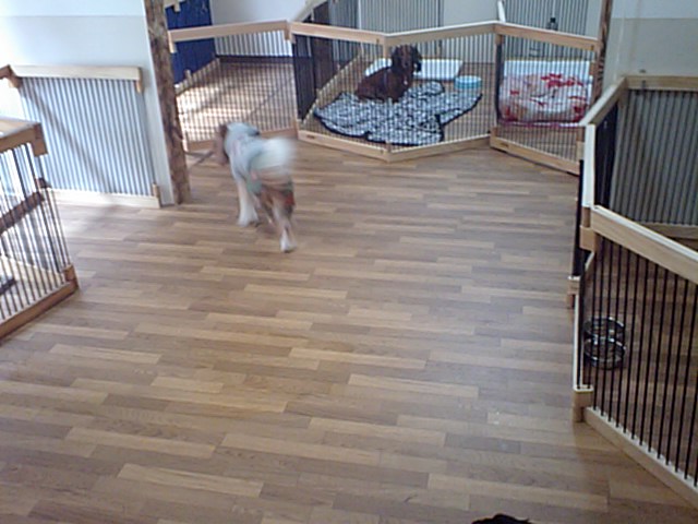 とりあえず昼間は大型犬エリアでバタバタしてもらいましょ。夜は母屋で寝てもらいます。