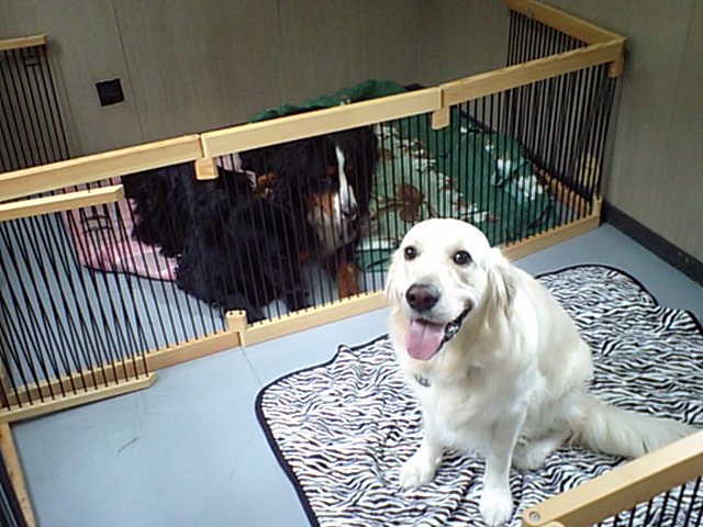 いつもは日帰りでお預かりで来てますゴールデンのきすけっち、今日は初めてのお泊まりかな? チェックインしました。