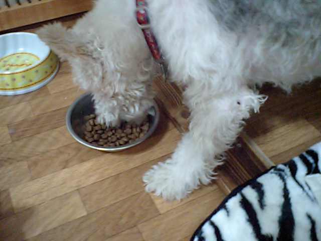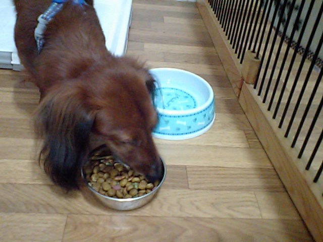 常連ダックス君とワイヤー君はご飯を完食、ダックスモカちゃんとチョコちゃんはとりあえず口をつけただけ。置いておけば後から完食します。