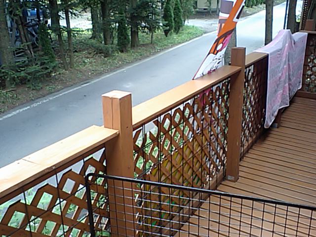 ダディーのデッキの柵なんですが、小型犬エリアは130cm位の高さです。 普通のワンちゃんは越えられないんですが、トイプーちゃんとかで中には凄い子が居るんです。