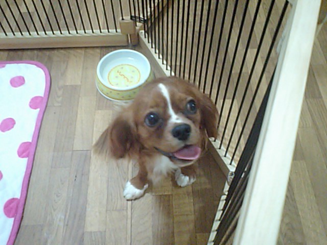 キャバリア君は少し口を付けただけ。 遊びに誘ってきます。