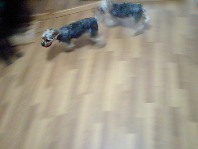 小型犬エリアではヨーキーちゃんズが走り回ってます。 動きが追えなくてピンぼけ。
