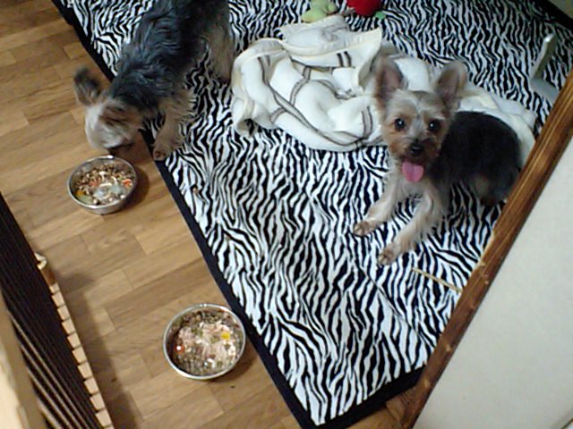 ヨーキーちゃんズは晩御飯をほぼ食べました。