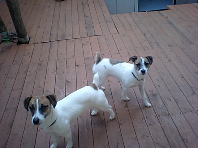 大型犬エリアではジャックラッセルずが… 昼も夜もプロレスに興じてます。 カメラを向けたら止めちゃいました。